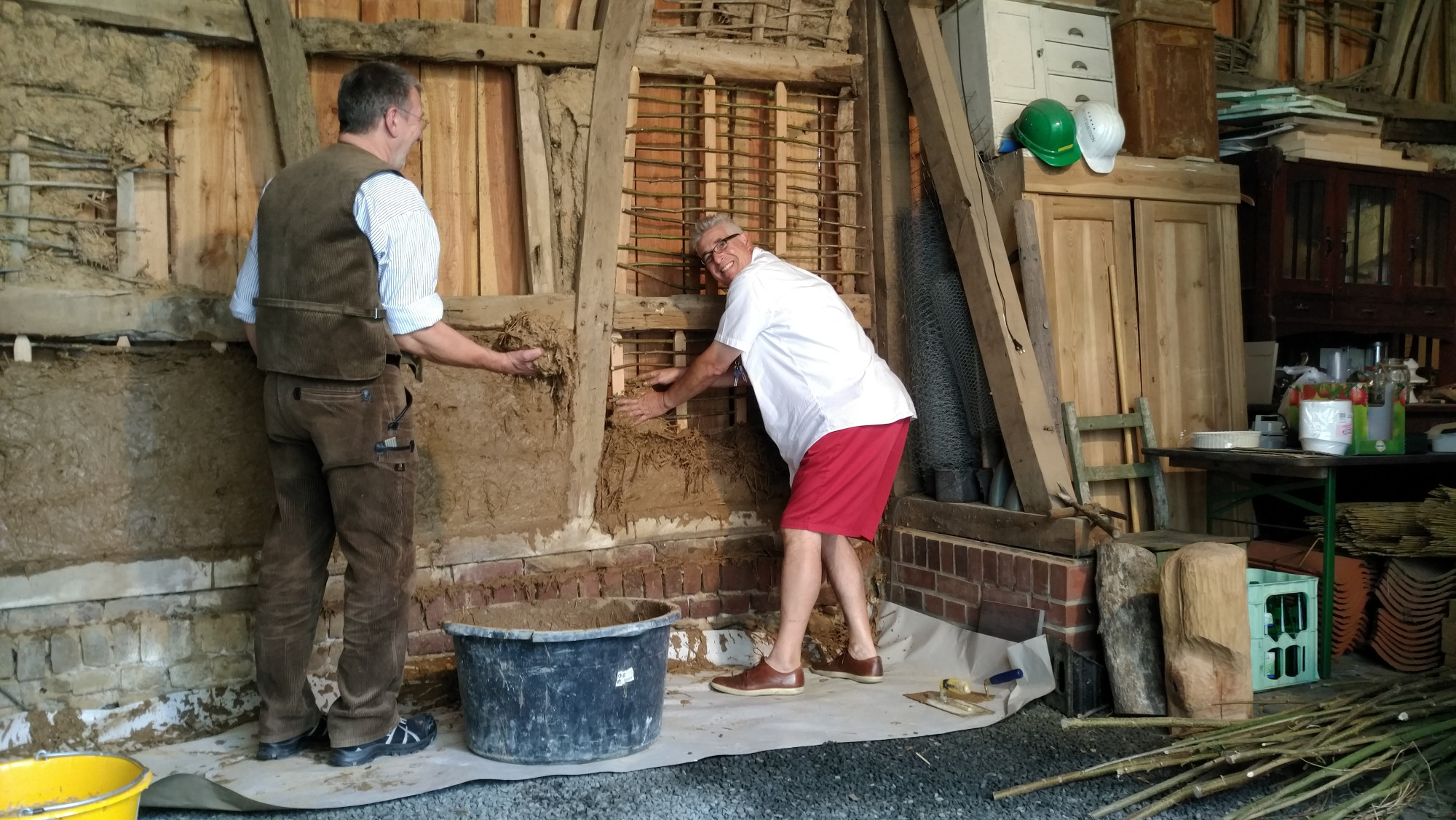 Am Sonntag, 09.09.2018 kamen zahlreiche Besucher bei strahlendem Sonnenschein zur “Expedition Heimat 2.0”. Am Objekt “Hülstrung 49” konnte man einigen Mitarbeitern unseres Teams dabei zusehen wie Gefache mit Strohlehm ausgefacht wurden. Manche der Besucher haben vor Begeisterung gleich selber angepackt und probiert, wie´s geht. Wie man sieht, für Groß und Klein eine riesige Freude.