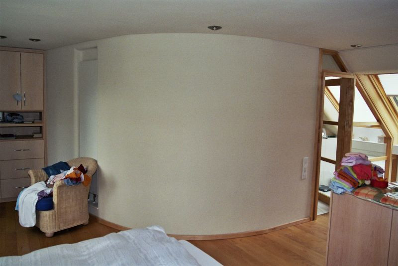 Im Erdgeschoß wurde eine Wandheizung eingebaut. Das Obergeschoß wurde ausgebaut. Alle Wände und Decken erhielten Lehmputz: